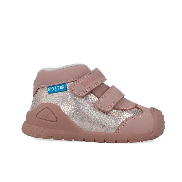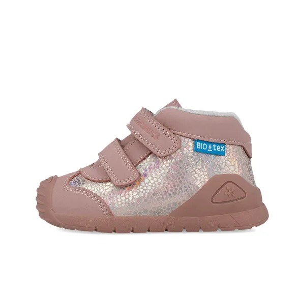 Cholewka wykonana jest z wysokiej jakości skóry naturalnej, która gwarantuje trwałość i elegancki wygląd, a materiał tekstylny wewnątrz zapewnia odpowiednią cyrkulację powietrza. Płaska podeszwa z innych materiałów wspiera stabilność i bezpieczeństwo podczas chodzenia, natomiast technologia Bio-Tex dba o zdrowy rozwój stóp, zapewniając im naturalne warunki.