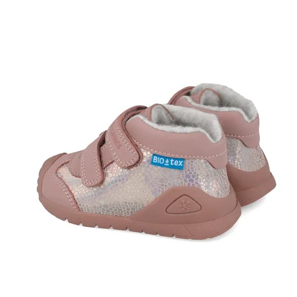 Buty dziecięce z naturalnej skóry ocieplane – pudrowy róż i srebrne detale
